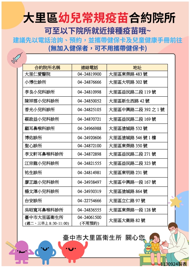 大里區幼兒常規疫苗合約院所