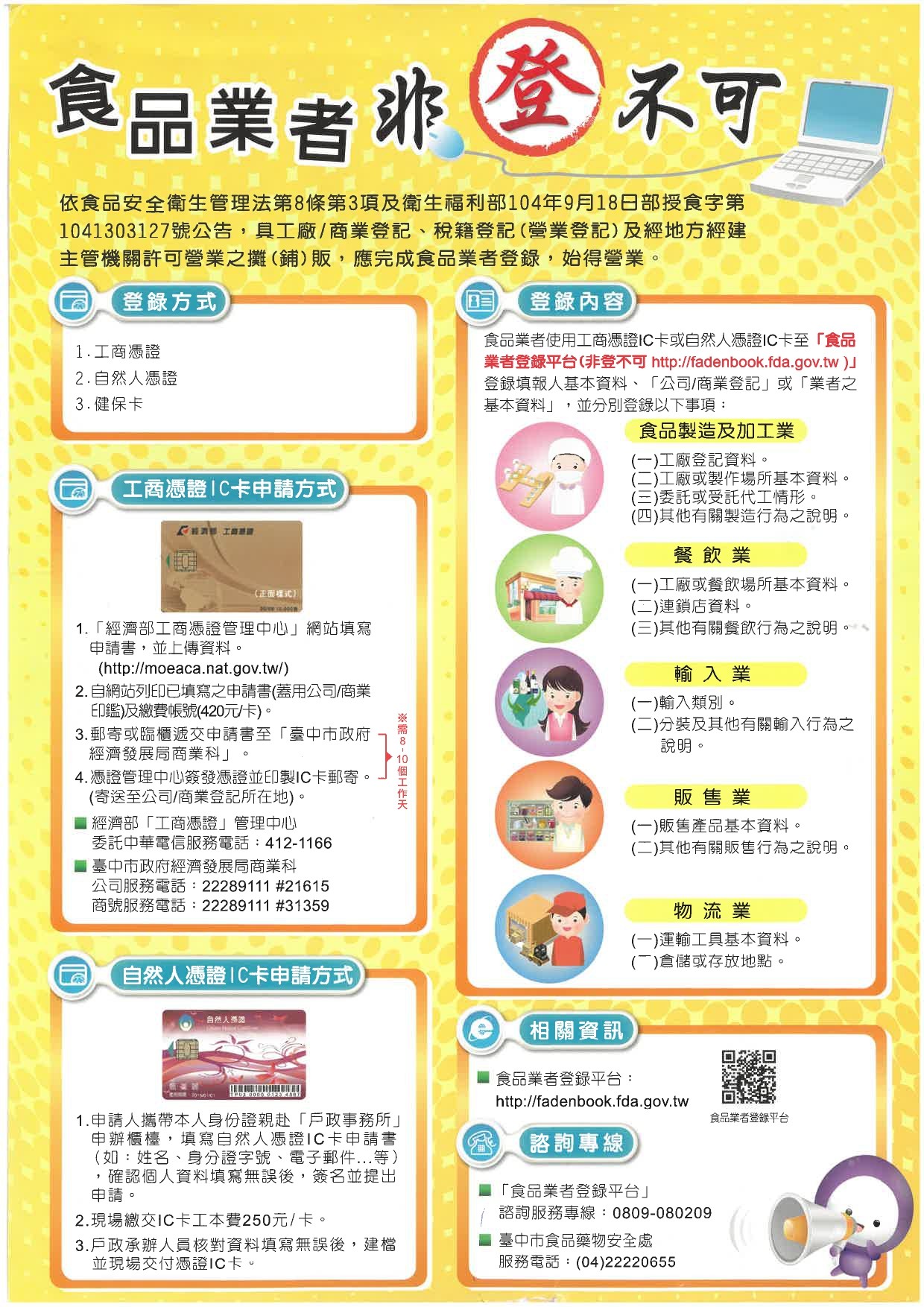 2.近期登錄業者人潮眾多,再請耐心等候使用電腦,或可至店家所在地衛生所或台中市食品安全處臨櫃處理