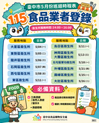 臺中市食品藥物安全處貼心服務,就近辦理最方便!